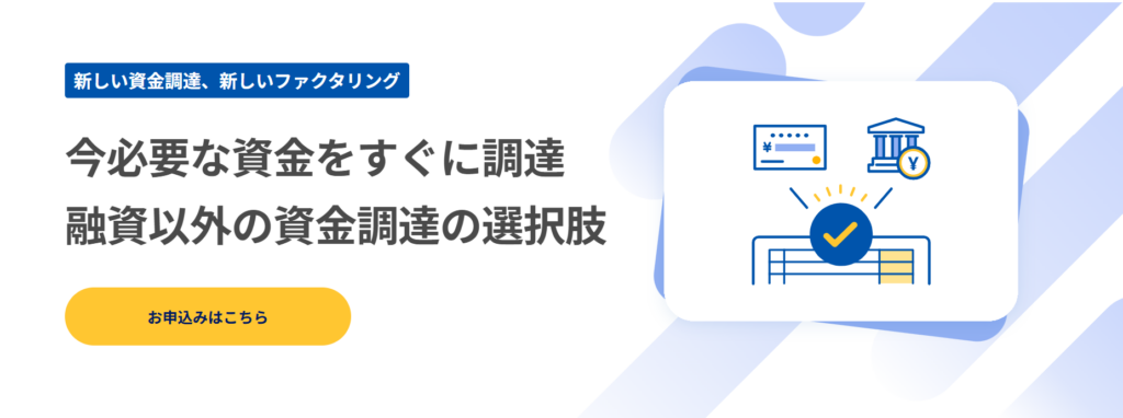 | 三菱UFJファクター | 1.5%〜 | 数百万〜数億円 | 最短翌日〜 | 法人 |