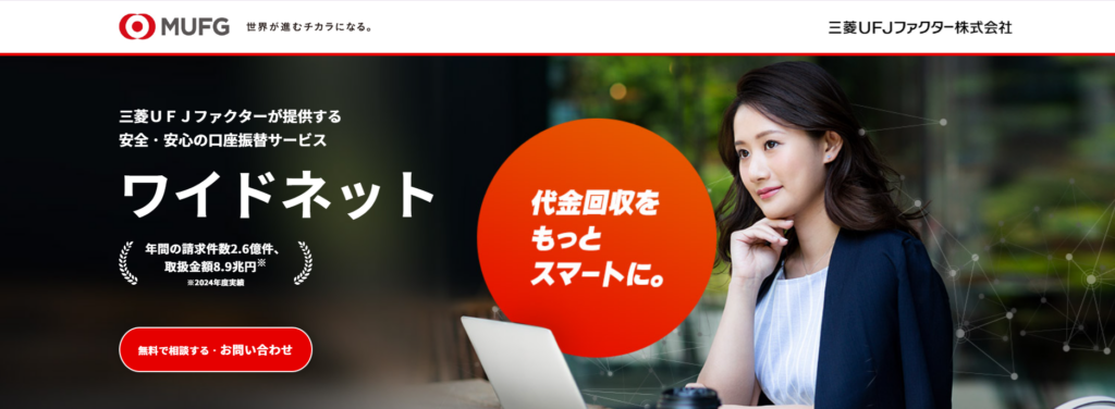 三菱UFJファクターは、東京都中央区に本社を構える、法人向けの即日対応ファクタリングサービス提供会社です。大手銀行グループ傘下の安心感があり、中小企業や法人にとって、資金調達の信頼性が高い点が大きなメリットです。オンラインや郵送で審査から入金まで対応可能で、2社間・3社間ファクタリングの両方に対応しています。利用者の状況や希望に応じて最適な方法を選ぶことができます。
