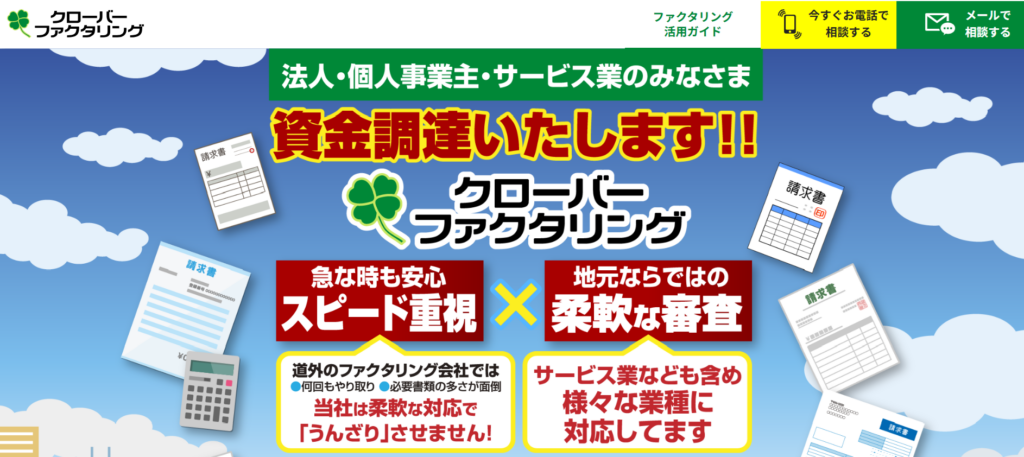 クローバーファクタリングは、北海道を中心にサービスを提供しているファクタリング会社です。札幌市を拠点に、道内各地の事業者からの資金調達相談に対応しており、地域事情を踏まえた柔軟な対応を強みとしています。