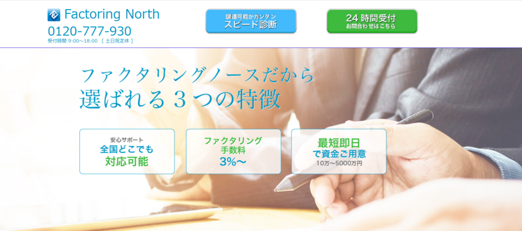 ファクタリングノースは、北海道札幌市に拠点を置く地域密着型のファクタリング会社です。道内事業者の資金繰り事情を熟知しており、建設業・運送業・卸売業など、入金サイトが長くなりがちな業種からの相談にも柔軟に対応しています。