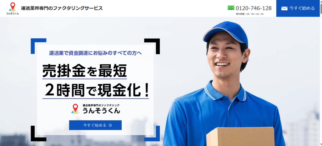 うんそうくんは、運送業界専門の売掛金ファクタリングサービスです。運送業に特化しているため、業界特有の資金繰りの悩みや支払いサイトの長さに対応しやすいのが特徴です。請求書だけでなく、発注書(注文書)のファクタリングにも対応している点が強みとなっています。オンラインで申し込み・契約が可能なため、来店不要で手続きが完結します。手数料は5%~と比較的リーズナブルで、最短2時間程度で資金化が可能です。売掛金の買取可能額に下限・上限の制限がなく、法人・個人事業主ともに利用できます。2社間契約のため、取引先に通知されずに資金調達できるのもメリットです。